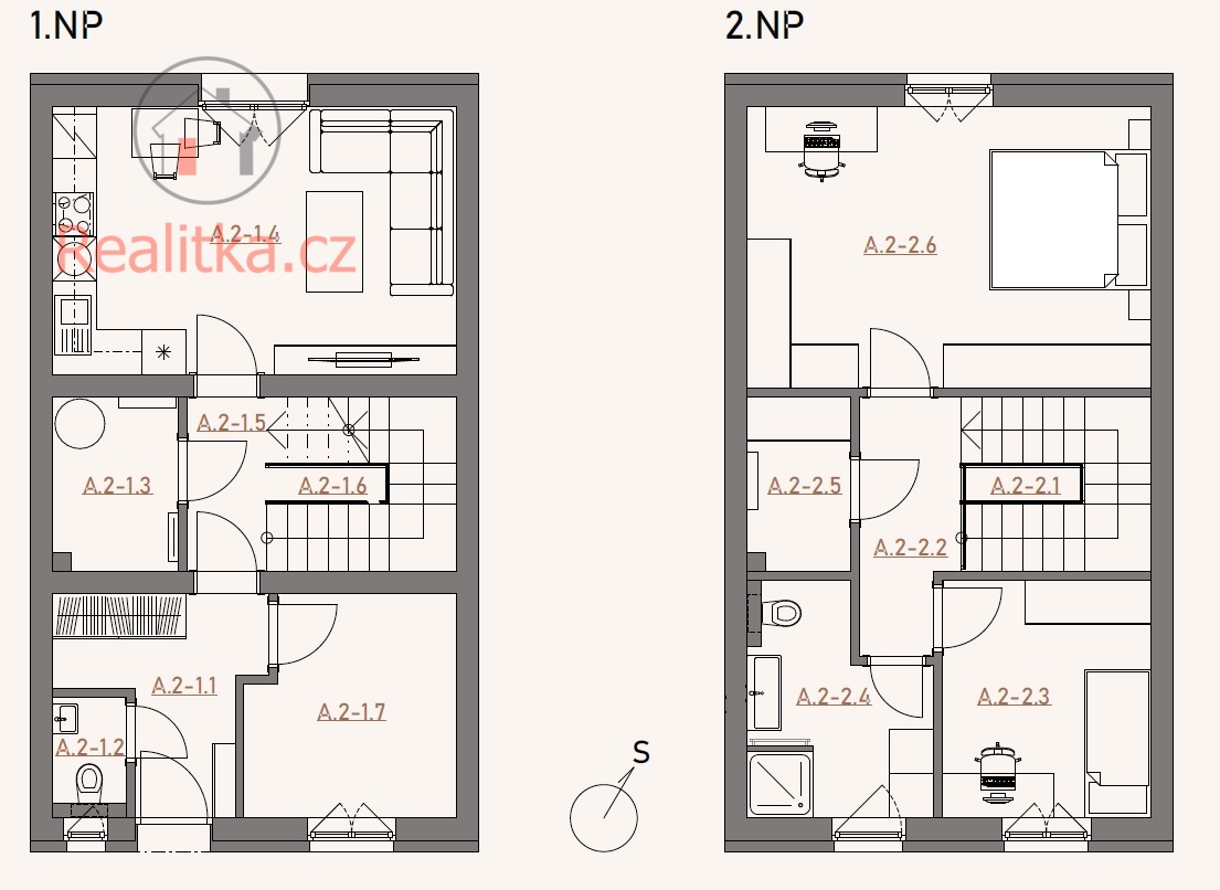 A2 o dispozici 4+kk o celkové užitné ploše 98,13 m2 a pozemkem o výměře 273 m2