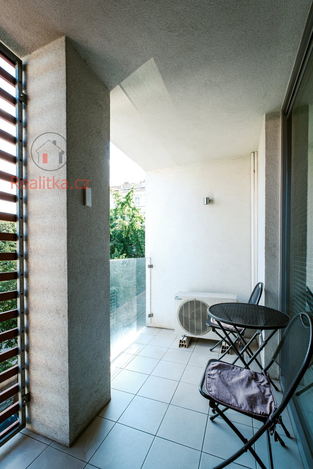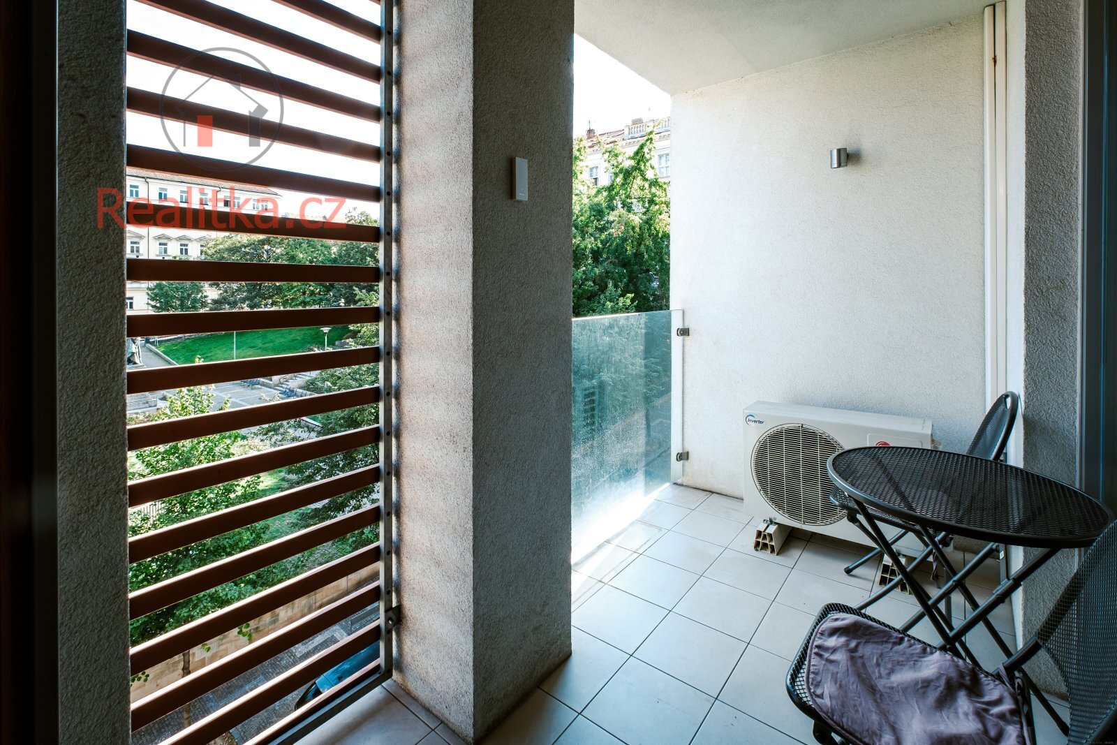 • Lodžie s výhledem do parku, se zábradlím z bezpečnostního skla a mrazuvzdornou dlažbou