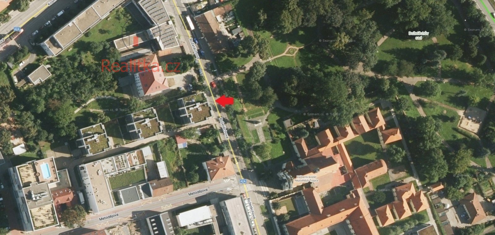 Exkluzivně nabízíme k prodeji parkovací stání v Brně, část Královo Pole, nacházející se v podzemních garážích nového projektu v Božetěchově ulici. Jedná se o možnost parkování Vašeho vozu v 1. PP bytového domu. Toto parkovací stání má nadstandardní velikost i pro veliké SUV, případně i vhodné jako invalidní stání. Dále je parkování jako poslední v řadě, takže se snižuje pravděpodobnost poničení krajního vozidla okolními vozy. Tyto skutečnosti potvrzují výjimečnost tohoto stání. Vjezd do garáže zajišťují elektrická vrata na dálkové ovládání nebo prozvoněním telefonem.